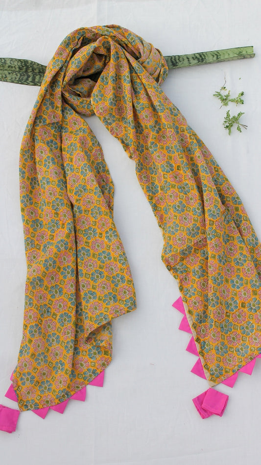 Yellow floral block print stole