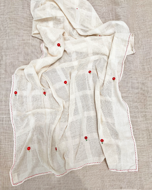 Rose Embroidered Kora Dupatta