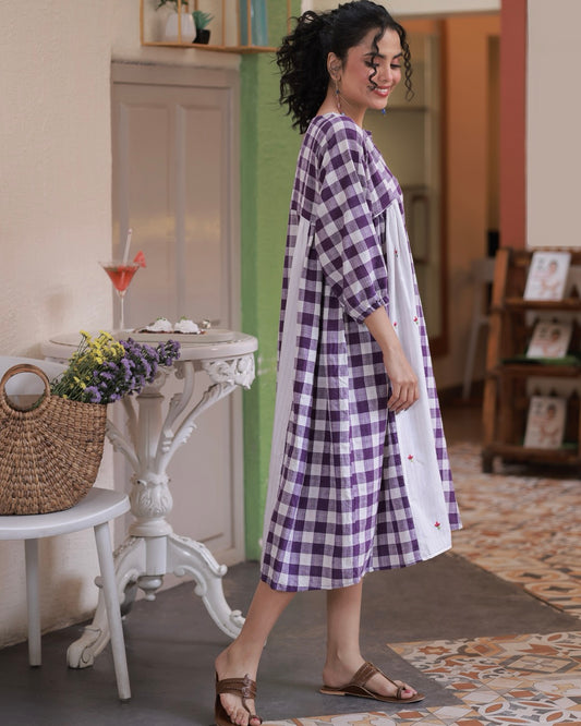 Violet Gingham Handwoven Midi Dress